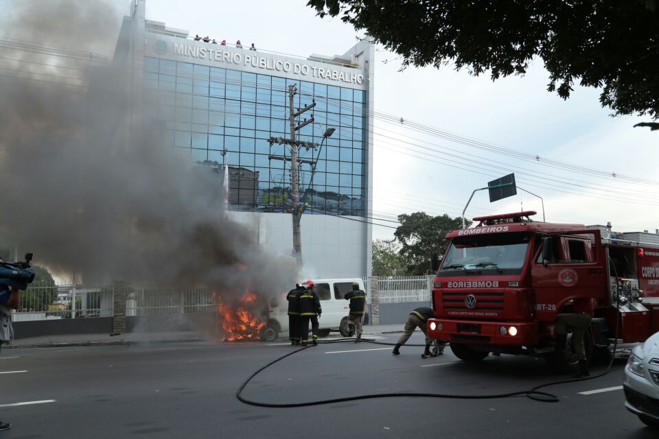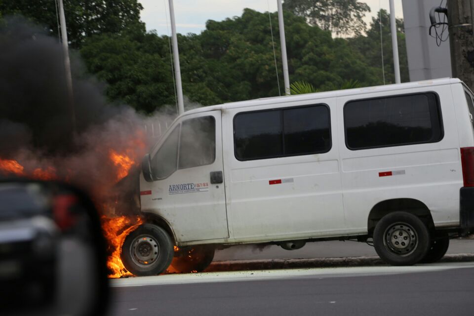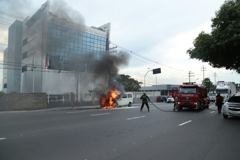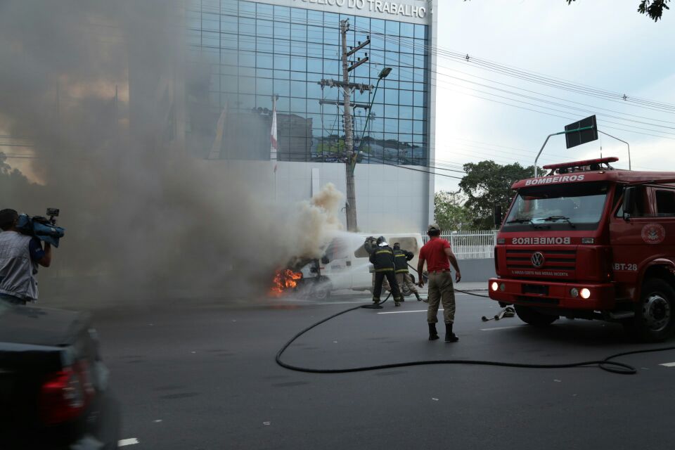 MANAUS - O fotojornalista Walciney Xavier (Ney) flagrou por volta das 15h30 um veículo modelo van em chamas na avenida Mário Ipiranga em frente à sede do Ministério Público do Trabalho AM/RR.